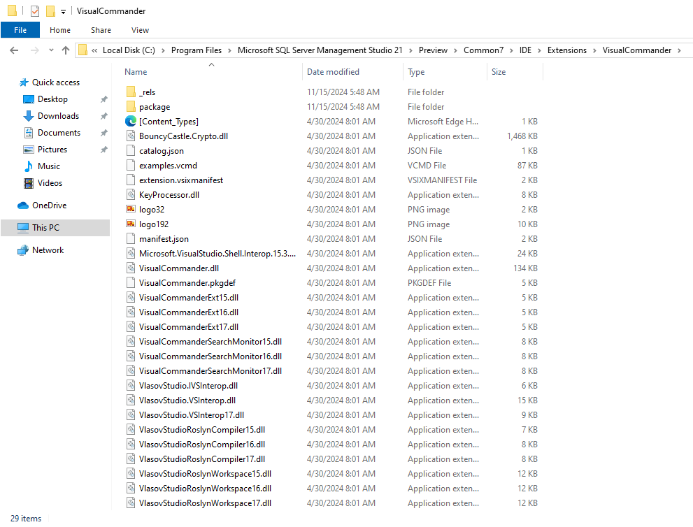 SSMS 21 RTM allows to install extensions in .vsix format and Visual Commander v3.5.0 supports it: