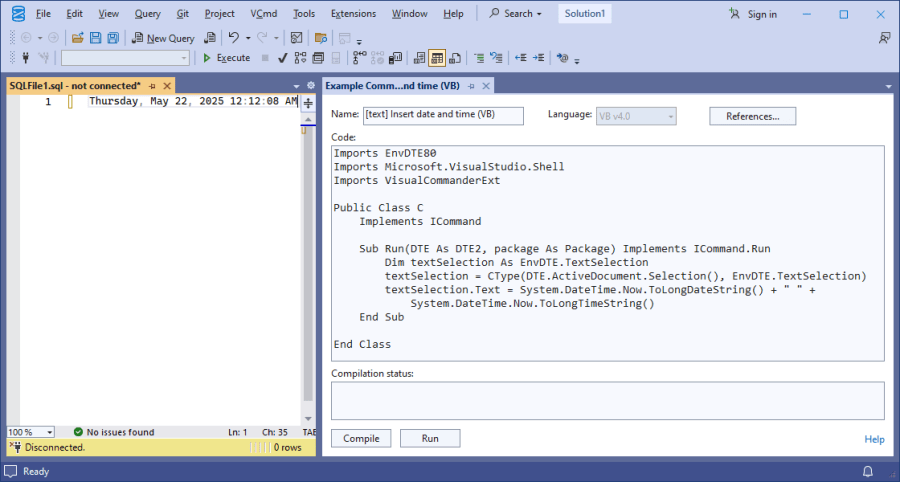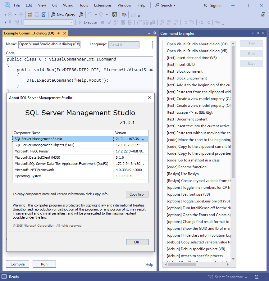 Visual Commander is a freemium extension allowing you to automate repetitive tasks in Visual Studio and SSMS.
