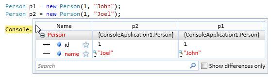 BugAid can compare two objects for you and find the differences: