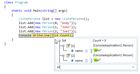 You can quickly customize the single line view for each class by selecting important fields that you want to see as a description. For example, in the following screenshot I selected the BaseURI and IsReadOnly properties for XmlDocument: