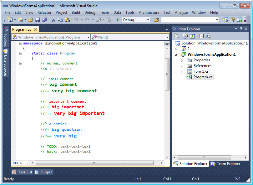 Different comment styles in Visual Studio 2010