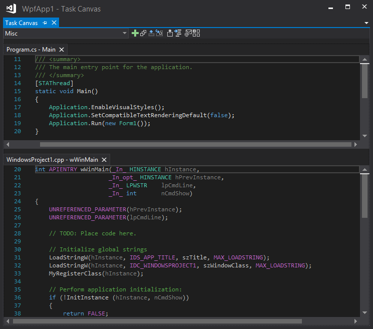 The Task Canvas extension lets you edit multiple methods from different classes in one window and quickly switch between document groups.